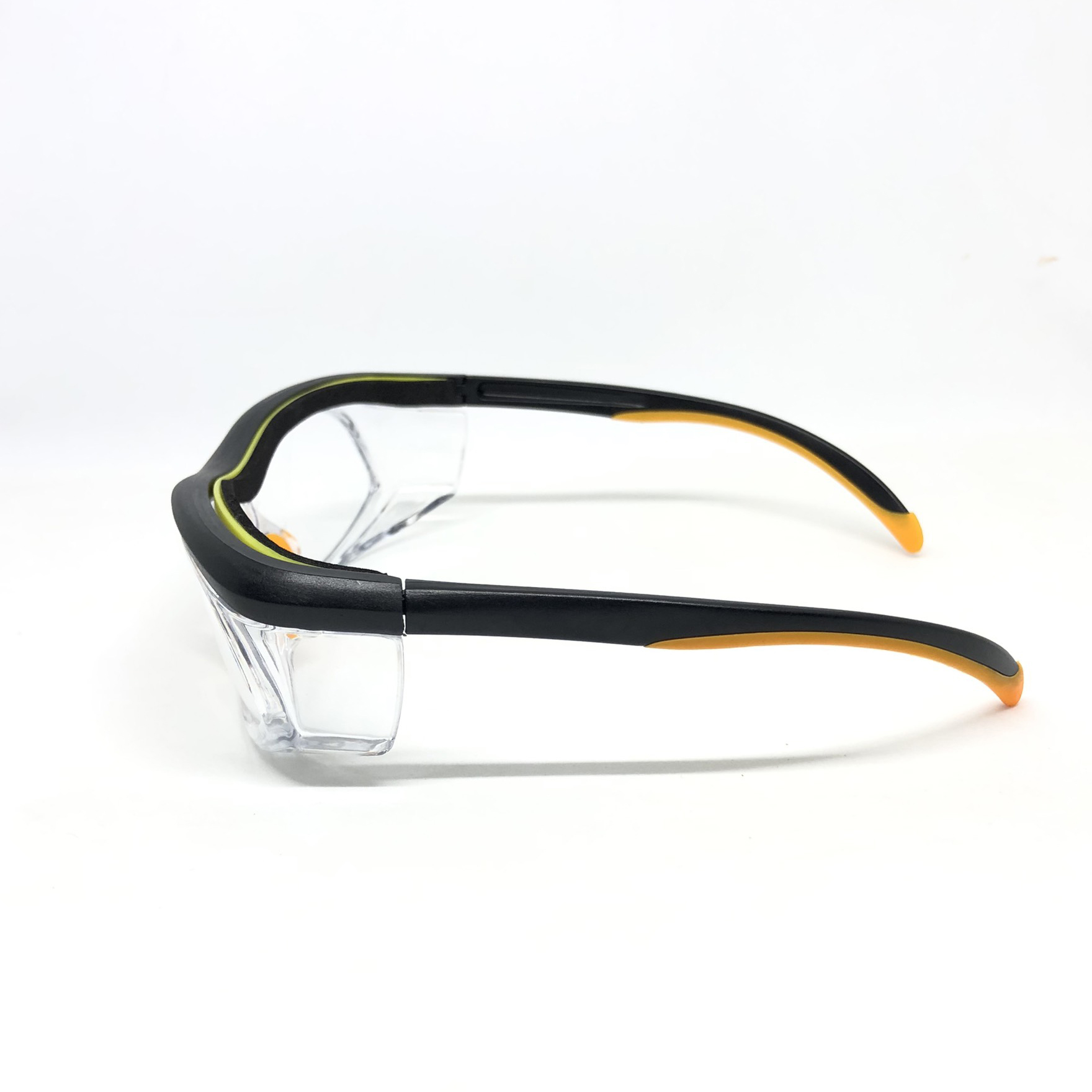 Có lá chắn hai bên để bảo vệ xung quanh mắt. Chất liệu kính polycarbonate bao gồm phần tiếp xúc giữa mũi và kính.